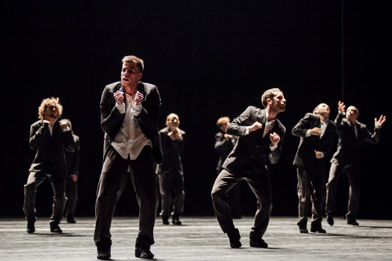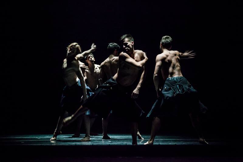 El programa arranca con una danza muy masculina, con «Sub» de Itzik Galili. El vestuario está a la altura de los bailarines y de una coreografía de la que destaco sobre todo el enorme trabajo físico que te mantiene en tensión en todo momento. Hay una sensación de difícil descontrol muy controlado. Los movimientos, muy exigentes, se vuelven mágicamente orgánicos, gracias al buen trabajo y a una ejecución concentrada de los bailarines. Tomo aquí unas fotografías compartidas en el facebook de la Compañía, la galería de imágenes se puede ver completa aquí.
