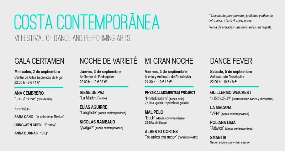 Un festival que, además de ofrecer formación a cargo de grandes maestros y maestras, programa una buena selección de piezas, ambas cosas a precios muy asequibles, para llevar la danza contemporánea a un paraje natural excepcional. Toda una proeza, la de programar danza en nuestro país, y hacerlo además fuera de las grandes ciudades. Y sin embargo, este año el cartel de Costa no ha merecido el apoyo de la Junta de Andalucía. Probablemente sea solo una dificultad más, de entre muchas otras trabas con las que se suele encontrar la cultura en este país. De nuevo, toca apoyar la cultura desde nuestras capacidades individuales, las que construyen la lucha común, con nuestra presencia o nuestro apoyo desde la distancia, para suplir lo que nuestros supuestos «representantes» no hacen por nosotros. Y dejar claro que SÍ, que queremos que esto siga sucediendo. Pero no desde la resignación, sino desde la protesta y la conciencia de que las cosas no deberían ser como son. Sigamos exigiendo el cambio. Y mientras tanto, no renunciemos a que esto suceda.