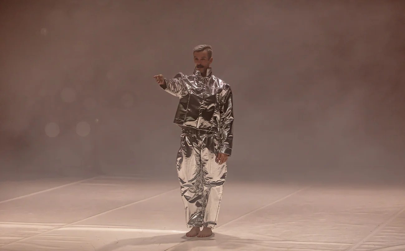 Entre los dos actos se producen varias inversiones. ‘Pausa Azul’ inicia con un cuerpo tumbado, quieto, horizontal. Ha abandonado la verticalidad y la voluntad de trascendencia. Un cuerpo que invita a la disección de los detalles, sin jerarquías. La imagen de la carne bajo la luz fría, contrastada con superficies de tonos metálicos, destaca su vulnerabilidad y corruptibilidad. Permite observar y asomarse sin pudor al cuerpo, pues no hay intenciones ni juicios. Otra inversión es la que convierte al propio bailarín (por vía del vestuario) en superficie reflectante, de modo que no puede escapar de la luz, lleva el reflejo consigo: está siempre expuesto.